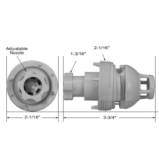 Dysza do hydromasażu Hayward VARI-FLO do przepustu Jet-Air. Kompletny zestaw systemu Hayward JET-AIR pozwoli zamienić basen w strefę relaksu z hydromasażem. Specjalna konstrukcja pozwala na stworzenie silnego przepływu wody dla optymalnego efektu hydromasażu.