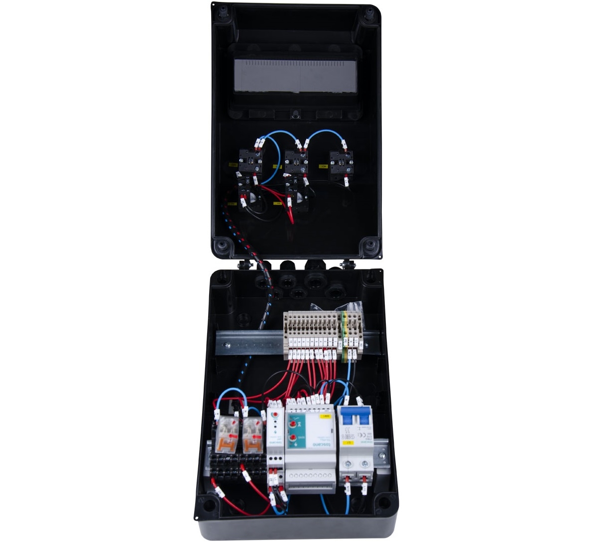 Panel sterowania zbiornikiem przelewowym Hayward-Toscano ECO-FILL-2-230V, 5 sond. Służy do kontroli i utrzymywania poziomu cieczy w zbiornikach. Posiada 5 wyjść (4+1 czujnik). Przewód do podłączania czujników jest sprzedawany osobno.