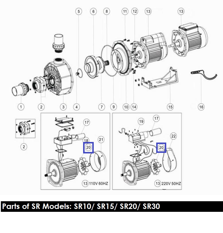 Wirnik wentylatora pompy Emaux SC/SR/SB 10-15 01031007.