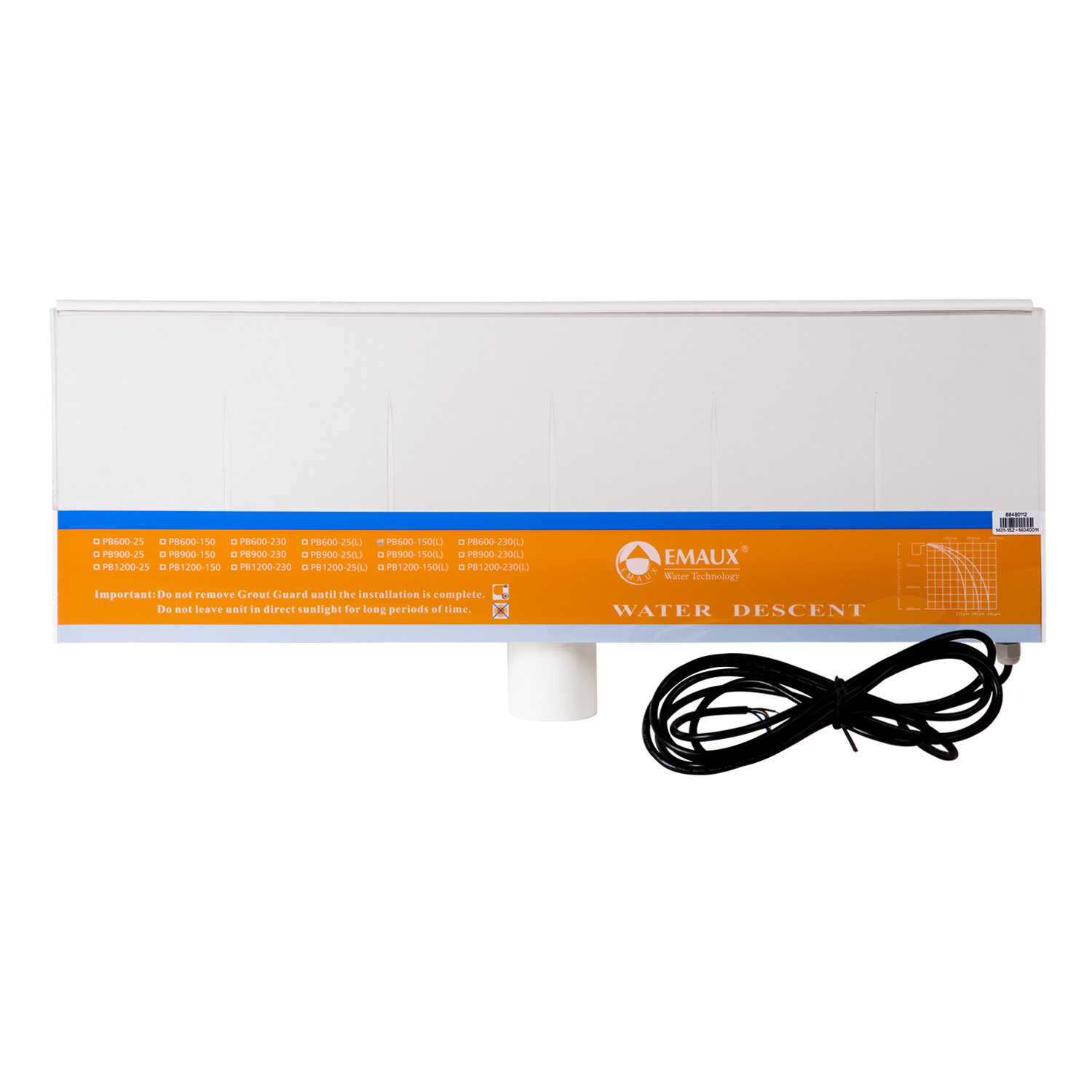 Wodospad ścienny Emaux PB 600-150(L) z podświetleniem LED. Pełni funkcję cyrkulacyjną i dekoracyjną. Wykonany z akrylu. Spokojny spadek wody. Regulacja kolorów za pomocą panelu lub pilota. Sterownik LED, pilot i zasilacz do wodospadu są sprzedawane osobno.Długość kołnierza: 15 cm