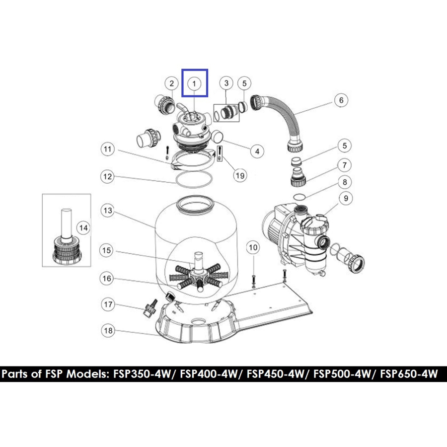 Zawór czterodrogowy Emaux MPV16 do filtrów serii FSU i FSP390 z przyłączem górnym. Wykonany z wytrzymałego i odpornego na promieniowanie UV tworzywa ABS. Za pomocą zaworu jest możliwa regulacja i wybór trybu pracy filtra (4 tryby).